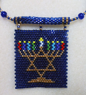 I hope you enjoy these 8 peyote patterns, designed for Hanukah but with a few that are universal. Each medallion can become a pendant, cuff or brooch, or incorporated into a greeting card, work of fabric art... it's up to you! I made one into a necklace.